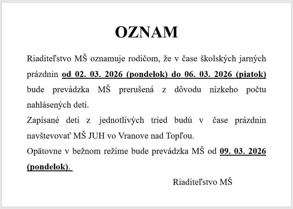 Oznam prázdniny – 25/26