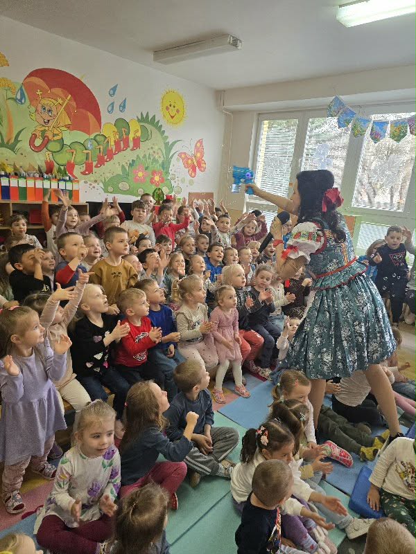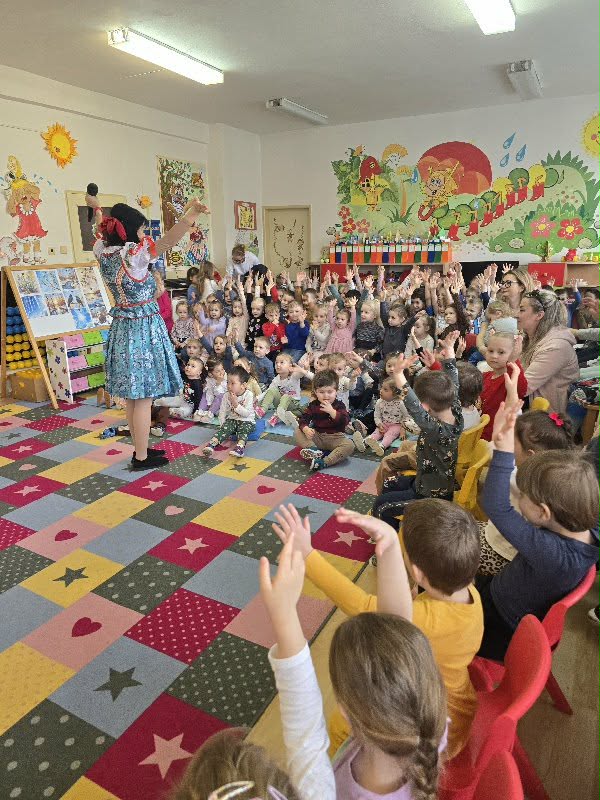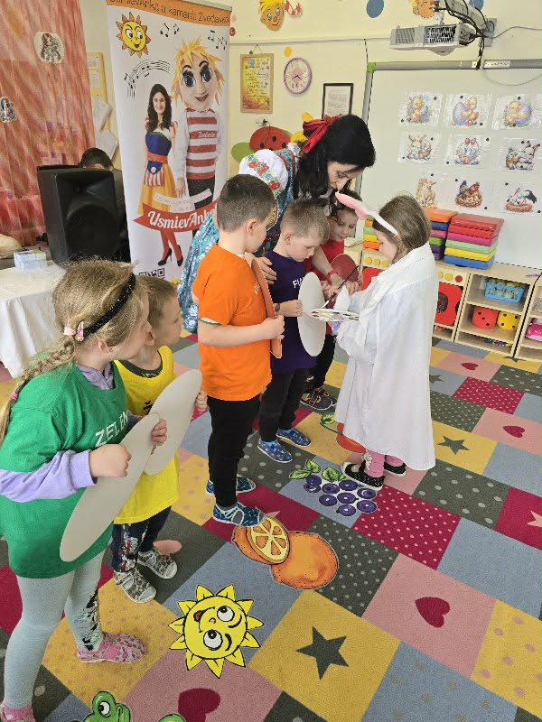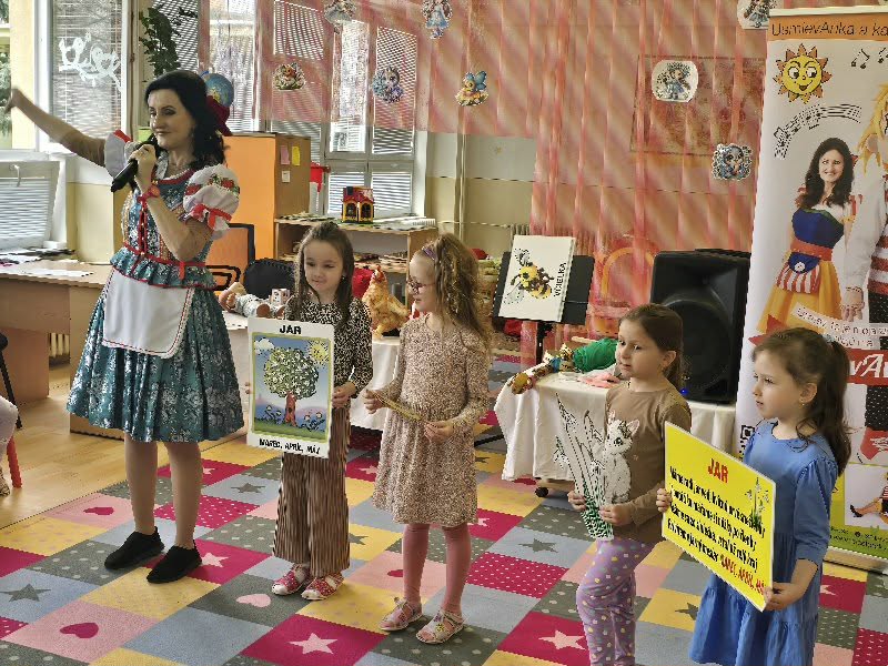 Dňa 30. 3. 2026 navštívila našu MŠ Usmievanka Anka s hudobným programom k Veľkej noci. Deti sa dozvedeli zábavnou formou o zvykoch a tradíciách, o maľovaní vajíčok či vynášaní Moreny…, boli súčasťou celého diania. Tancovalo sa spievalo…. a najväčšia radosť bola, keď sa objavil kamarát Zvedavko s veľkonočným korbáčom. Na záver nechýbala spoločná fotografia a malá odmena.